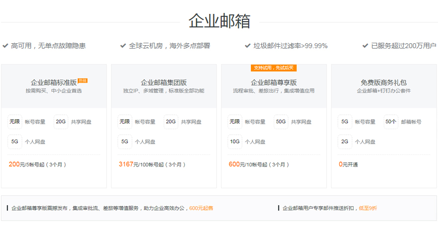 阿里企業郵箱,業內唯一一家擁有獨立公有云服務的郵件運營商,高性能網絡架構,支持按量計費節約企業成本,優惠多多,多年阿里云郵箱運營經驗,200萬用戶的信任之選,安全穩定。全球云機房,海外多點部署,全球暢游,助力企業輕松上云。我們是阿里云合作伙伴!為您提供:企業郵箱標準版,集團版,尊享版。